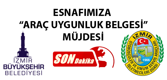 İzmir Esnaf Birliği önderliğinde Odamız ve diğer ilgili Esnaf Odalarının yaptığı müracatlar neticesinde İzmir Büyükşehir Belediyesi varılan işbirliği ile bugün yapılan Olağanüstü UKOME toplantısında ilimizde yolcu taşımacılığı yapan araçlarda ve “S” Plakalı servis araçlarında Belediye Ruhsatı almak için gerekli olan “Araç Uygunluk Belgesi (Görüntü Belgesi)” zorunluluğu kaldırılmıştır.